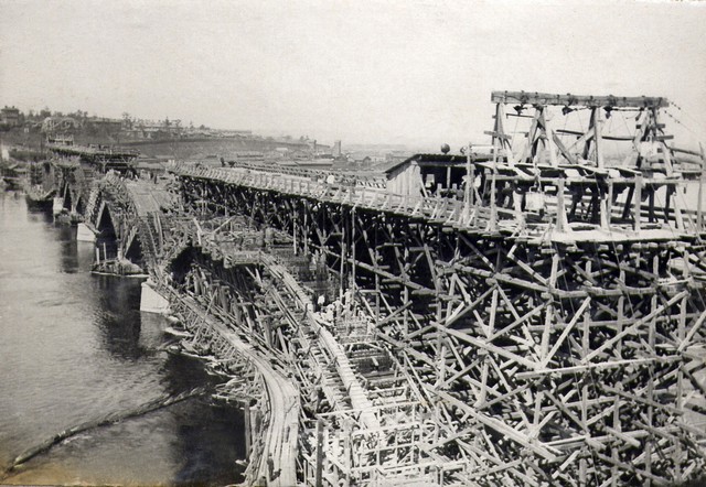 На фото: строительство Ангарского моста, август 1935 года