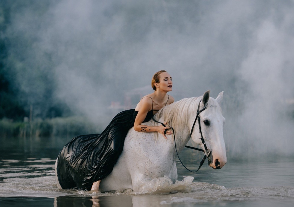 После съемок самой масштабной части видео на льду, во время погрузки на хивус, наша стилист упала и сломала руку, причем перелом оказался непростым, и пришлось делать операцию. Вторую половину съемок мы работали без Жени уже на какой-то бешеной скорости, потому что все были уставшие и дико замерзшие. Финальный образ мы снимали минут за пять, не больше; за это время железное украшение, которое было у меня на голове, успело примерзнуть к уху, и получился ожог. В общем, съемка получилась мощная и по-настоящему мистическая. Такие проекты – это всегда не просто про красивый результат, а про погружение на свою новую глубину.
